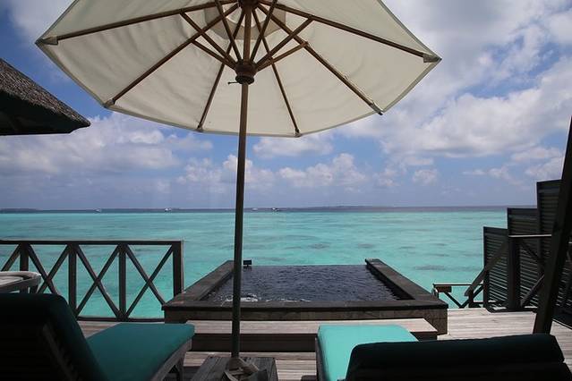 原本计划着选一个人少的,私密性好一点的岛,所以选岛基本上都是看的最北边的岛。因为岛实在是太多了,所以虽然把岛限定在最北边,基本上也是看图说话,看来看去挑中了Ayada 和 JA Manafaru 。两个岛从星级和环境等各方面都比较类似,看了很多攻略,咨询了很多人,还是没定下来,后来了解到王祖蓝蜜月是在JA 岛,抱着跟着明星走应该错不了的心态就选了JA 岛。JA 岛是距离 马累 最远的岛,距离 马累 315公里,环境优美,人少,私密性好,如果不是特别看中浮潜或潜水的,这里是不错的选择。