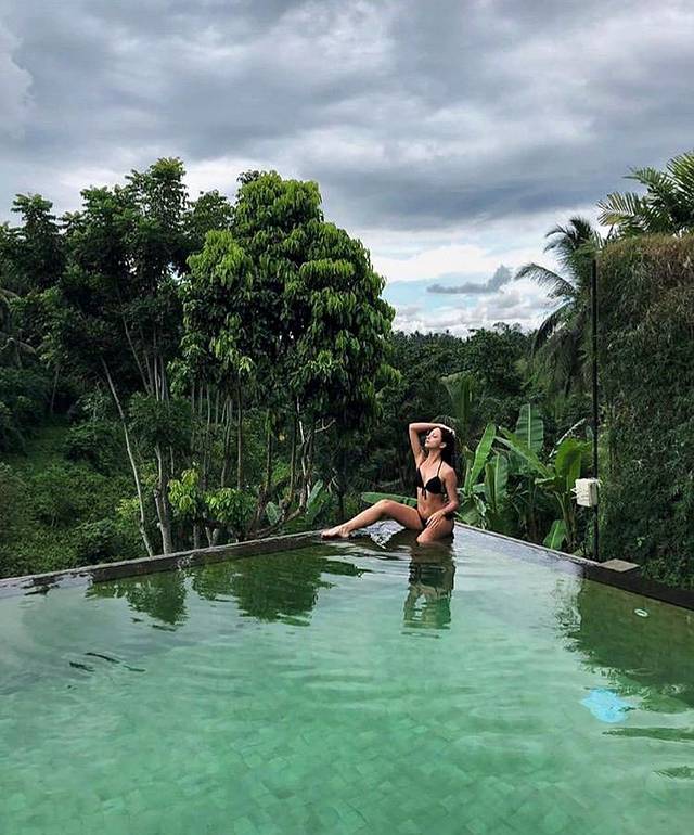 优点:双层无边泳池朝向悬崖外,水不会很深,面向乌布最美的丛林,还能看到Payangan的稻田和庙宇。
