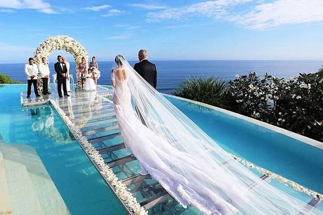 优点:悬崖无边泳池面朝大海,可以坐小缆车前往私人海滩,酒店的餐厅、水疗设施都很好,婚礼还有专业的团队策划,其中水上婚礼最有特色!