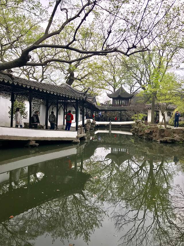 拙政园,不愧是苏州最大的园林,可惜当天是阴天,在阴冷的情况下并不能很好看到园子里阳光明媚的春色。布局很大,一步一景,移步换景,虽说现在仿苏州园林的建筑风格在各地很常见,但参观完这个保存完好的大园子也是很震撼的,在这能看到古代文人墨客的雅致气息。