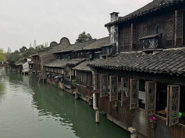 抵达西栅酒店安顿好后先去东栅,东栅的旅行团较多,路线比较单一,苏杭一带不像其他偏年轻化的路线平时人少,来看她的游客在非节假日还是很多呢,华东五市游可不就是阿姨团的风格哈哈!发现很多东北人出游,莫非苏杭是东北人的后花园?东栅和西栅同样是景区,西栅票价更贵,景区管理更加完善,古镇建筑更完整美好,东栅感觉像是搭配西栅附赠的,如果时间不够可不去,景色一般,人一多就体验不到她的宁静美好。