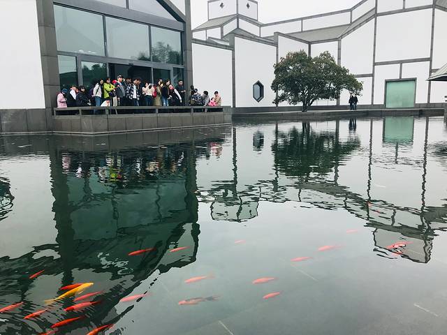 没来苏州之前,AP就极力推荐要去苏州博物馆,加上马蜂窝攻略的介绍,来这种历史韵味浓厚的城市参观博物馆是很有必要的,苏州博物馆,很多去过的人印象最深的估计是她的建筑之美了吧,知名建筑大师封刀之作,博物馆中间采用的是苏州园林的山水庭院风格,平静的水面倒映着简约的建筑,既现代又古典!很少城市的博物馆能够像苏博一样成为必去的景点之一备受推荐,或许因为她展现了苏州温婉精致的气质能成为了解苏州历史文化的旅游第一站吧,建筑里面最出名的是庭院里的一面临水而建假山白墙,金鱼漫游水中,一幅天然铺开的山水画卷,很有灵气。这次来苏博开始感受到这句话“博物馆是个神奇的地方,她的迷人之处在于能探寻发现未知的美!”建议提前一周预约参观,可免去排队等候时长。10点和2点会有免费讲解,导游介绍完重点文物的故事再自行一一游览才是完美的参观呀!