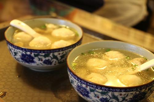 鱼丸成型工序一般都是由熟练的秋官郎鱼丸师傅来完成的。拿一勺子,快速的在打好的鱼浆中舀一勺,然后再以极快的速度在中间放陷,两手轻轻一捂封口,快速转动让鱼浆在小勺内变成一小球状。将小勺在一盛满水的水盆里轻轻一磕,小球便脱离了小勺,浮上水面的鱼丸煮熟便可以出锅,洒上醋、葱花和虾油,一碗热气腾腾的充满虾油味的福州鱼丸美食就制成了。煮熟之后的鱼丸,一口咬下去汁水四溅,相信没有人会拒绝这么好吃的鱼丸。