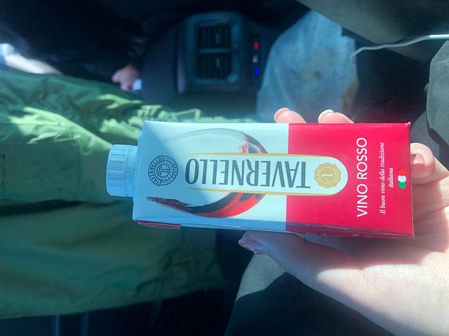 超市买了这种小罐的红酒车上喝~哈哈 我不做司机