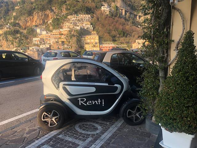 早上决定走去景点所以把车停好~再去停车点加时间投币拿卡放车前~下面不是我们的车车是酒店可以租的车哈哈好可爱~然后 波西塔诺 也有搭巴士的,问酒店要个地图看看哪里可以上车 我们是在沙滩边往上走点上车的~