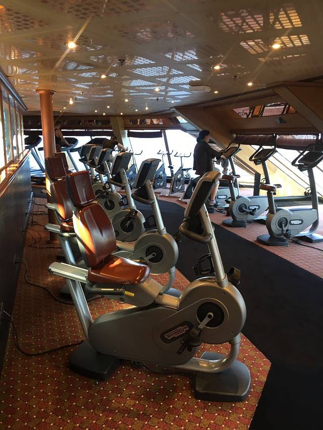 健身房位于11层。挺大的,跑步机和自行车特别多,满足基本健身需求没问题。喜欢跑步,气温高的时候可以去甲板跑。