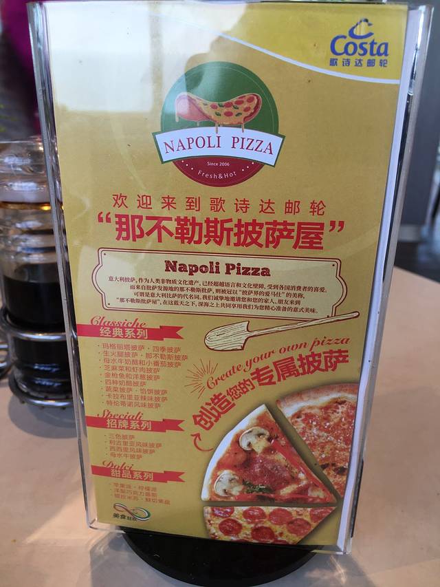 登船当天,驶出天津港之后,1-2小时左右,手机就没有网了。船上有上网套餐,但是很贵,而且基本也就是能满足发个微信文字之类的,用支付宝扫描歌诗达卡上的条形码好像就可以选购,也可以去三层服务台咨询购买。手机信号出港后很快就没有了。过一段时间又恢复,此时可以打电话、接电话,但不能上网,小编提醒大家,此时电话接打都是海事电话,非常贵,小编不知道,3天打了7、8通电话,花了400多电话费。