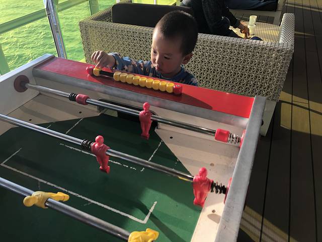 船上没啥儿童娱乐设施的,真的。最好的也就算是那个有滑梯的游泳池了。但估计开放了也全是人。有个思高儿童俱乐部,那里面其实啥也没有,是一个托儿所,有几个老师帮忙托管一下孩子,带着他们巡游做游戏之类的,但是只接收3岁以上能脱离父母的大孩子。那个尤文图斯俱乐部,就是有一个小得可怜的博物馆和一小块儿5人足球的甲板球场,估计也就是夏天球场才开放。孩子报名去足球训练,也是要收费的。