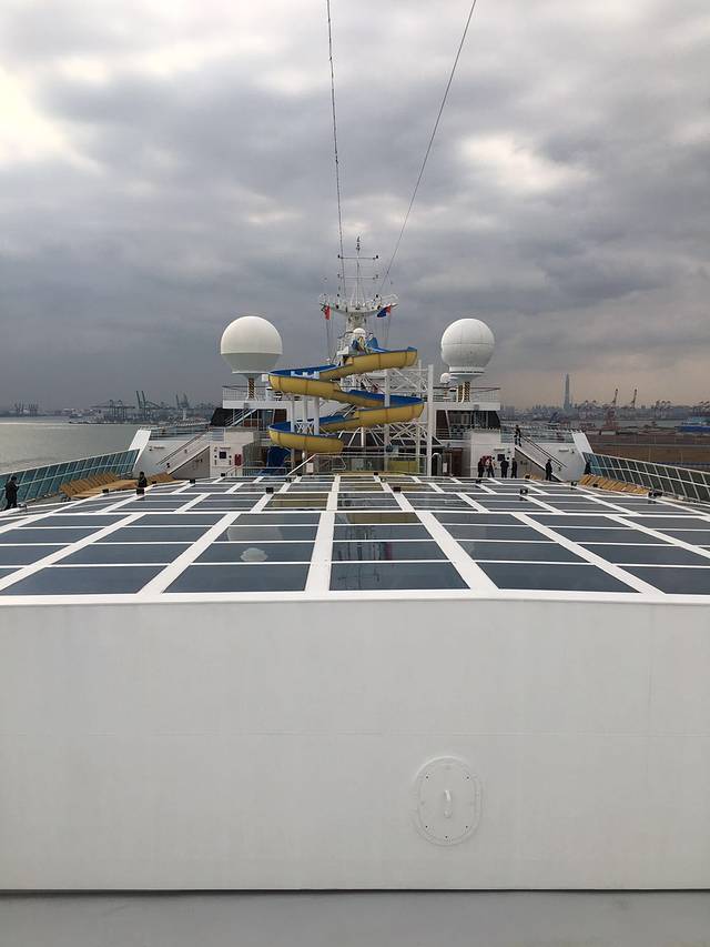 进大厅安检排很长的队。这里没有优先,除了坐轮椅的客人。不想排队的话,要么早点儿来,要么就晚点儿,或者在外面拍拍照,反正登船了也不能立马进房间,还要到自助餐厅待好一会儿。