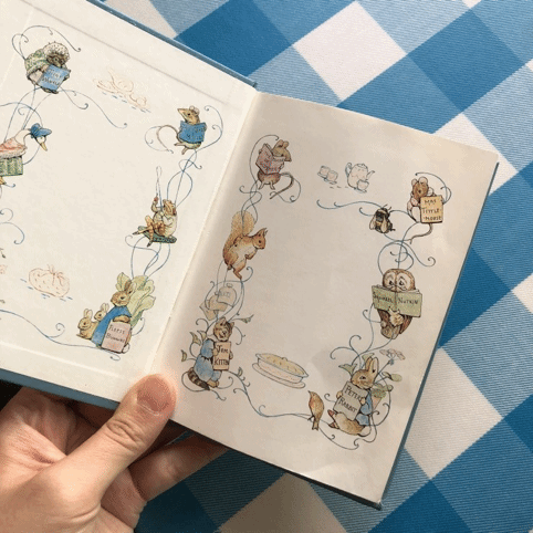 等候餐点上桌的空暇,还可以看看桌子上提前准备好的彼得兔童话书。
