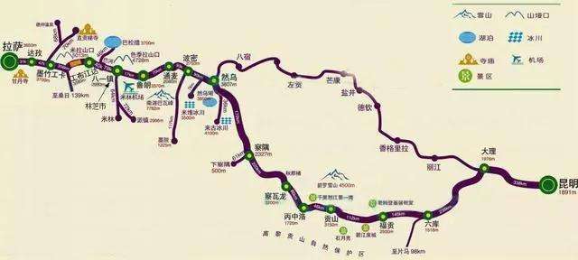 从昆明到大理,之后到怒江的六库,游览完怒江峡谷、高黎贡山自然保护区、经过贡山、丙中洛、秋那桶村进入西藏。