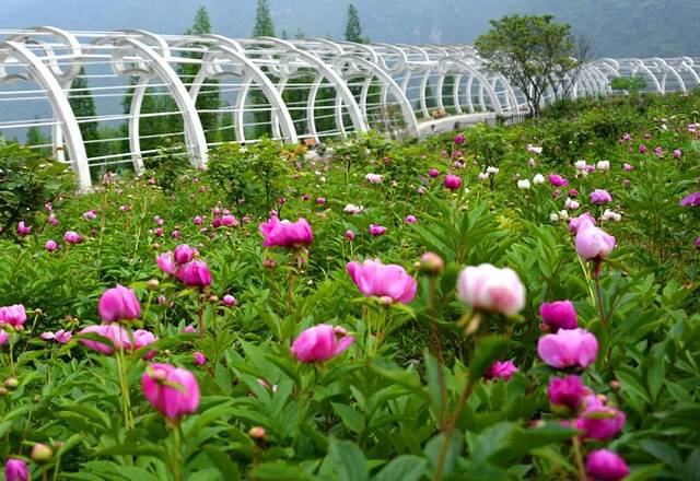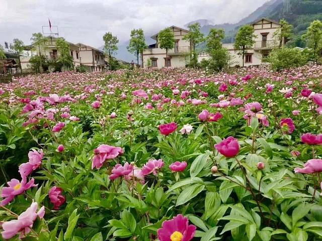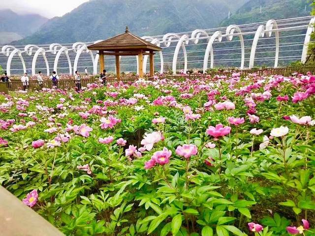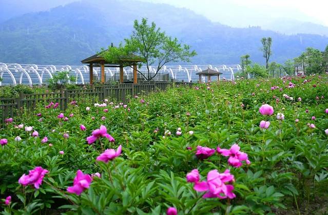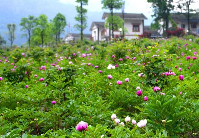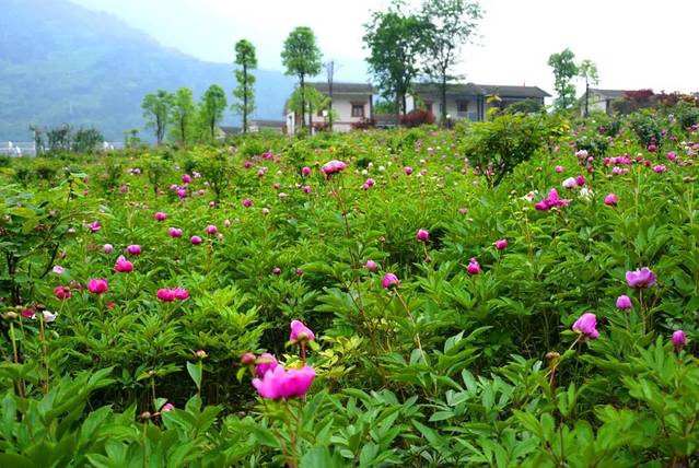 这100亩芍药花,位于汶川县映秀镇渔子溪村,该项目2015年开始实施种植。