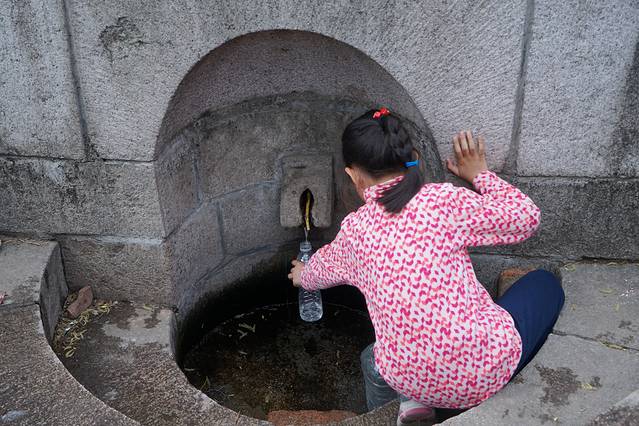 沿着主路往山上走,首先会看到神泉,这里的泉水甘甜冰凉,吸引众多的城里人来此拉水。我们也忍不住尝了一口,真的是透心凉。看看这小妹妹,正在认真的接神泉水,她要把这个泉水带回家给爷爷奶奶喝。纯天然的矿泉水,无污染。