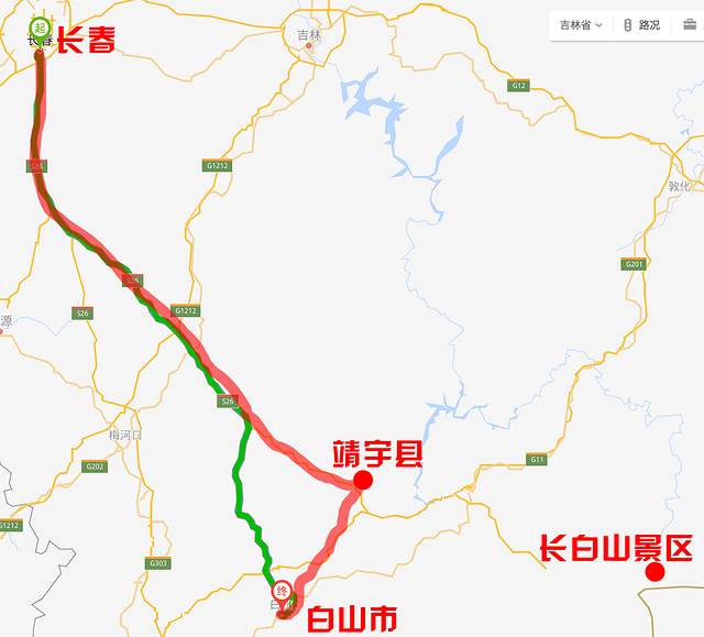 红色的是我们走的路线。可以看到白山市离长白山景区还是挺远的