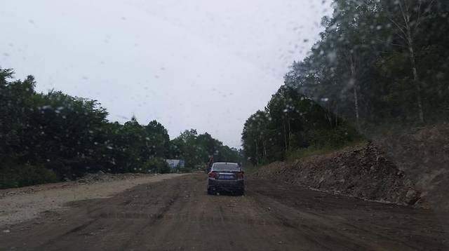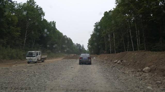 然后还有段土路。。这段土路很长,大概有4、5公里的样子,很多大坑,要小心驾驶(但是没有阿尔山磨阿公路那段破!)