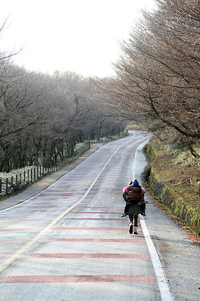 汉拿山作为火山喷发而形成的休眠火山,大部分都由玄武岩覆盖,根据季节的不同可以欣赏到春季的山踯躅、夏季茂盛的山林、秋季的枫叶、冬季的雪原。我带着二少来徒步汉拿山,完全是为了之后穿越雪山做的热身,那时他三岁,高高兴兴的上山,哭哭啼啼的下山,可能对于他来说这个强度真的足够毁三观了。