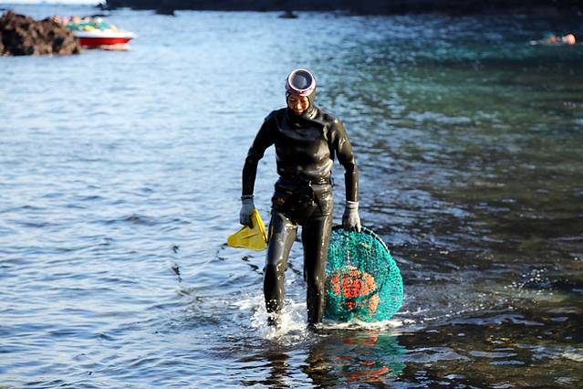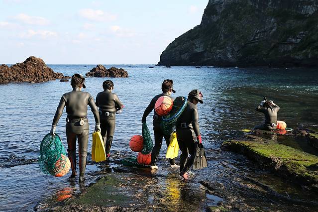 日出峰下还有堪称“济州一绝”的海女表演,海女是济州岛精神的象征,看着满脸风霜,身穿潜水衣,慢慢走向大海深处的海女,便能够体会到什么叫坚韧不拔,勤劳一生,作为一名潜水员,我的唯一感觉就是——冷!