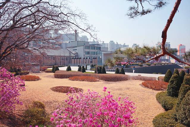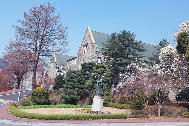 梨花女子大学不仅是首尔历史最悠久的大学,还是世界上最大的女性教育机构,欧式风格的教室和校园中的教堂,四季各有所美~突然降温的首尔阻碍了樱花的到来,错过了镇海,又没等到首尔的花期,于是来梨花女子大学散散步,欧式风格的建筑和春天各色的花海遥相呼应,梨大虽然不大,却足够用心去感受一下甜美的校园气息,绝对是满足一颗少女心的好去处,此时花开~