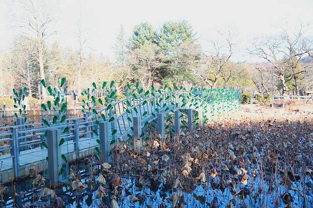 我们去的时候虽然是年末,大雪已化,留下少许的冰雕和未枯的树木,大概是游客们向往着剧中的美好爱情吧,一对对恋人争相和人物雕塑合照,我在一脸懵的情况下也被朋友推去合了一张,然后就去尽情享受岛上的悠闲时光了,幽静的树林、孤独的铁道、特色的木屋、闪烁的街灯,让人不由自主的步入慢节奏时光。