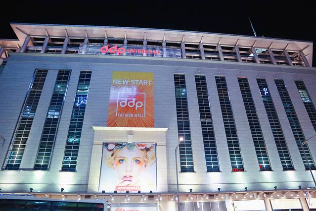 来首尔多数人都不会错过明洞、东大门,第一次来时我只是逛了逛明洞几条街就奔去济州岛晒太阳了,这一次难得好姐妹陪着逛街买买买,直接锁定东大门。整个东大门市场以中间的马路为界限,分为斗山塔所在的第一区和东大门运动场周围的第二区这两大购物区。东大门原来叫兴仁之门,是首尔城墙东面的大门,随着代购市场的日益庞大,东大门便成了地标式叫法。