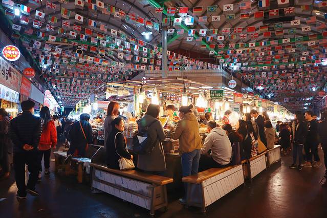 美食推荐:百年历史的广藏市场,探秘韩国人回忆中的美食胜地,地道的韩式小吃苍蝇摊儿,傍晚可谓人山人海,天气冷的时候座位上会有加热垫哦,很多摊位还有可爱的养乐多赠送,弄得你不买心里不落忍。。。炒年糕、泡菜饼、生章鱼、蜂蜜面包一个不少,吃饱了去逛东大门,热量消耗一整晚。