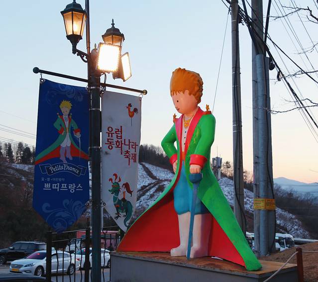 小法兰西村是首尔郊外的一个兼有青少年集训设施(古城青少年俢练院)的法国文化村,位于加平郡清平面古城里一带,由16栋法国式建筑组成,这里的建筑布局完全按照《小王子》里主人公居住的法兰西村庄设计,浪漫的童话气息从每一个到达这里的游客惊呼中散发出来。但对于一个非韩剧迷,来之前我并不知道这里拍了那部红的发紫的《来自星星的你》,我是双鱼座,但我却对韩式浪漫有着过于理智的抵触,综其原因大概是大学时代看学哥们看腻歪了。。。