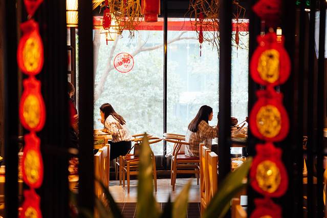 离开鸳鸯楼,我们俩必须得犒劳犒劳自己!地铁坐两站就是春熙路了,媛媛想吃川菜,临时搜索了春熙路周围的川菜馆,饕林餐厅稳居第一,那就去试试看吧。位置不难找,跟着导航就过来了。