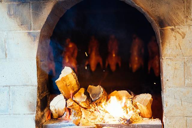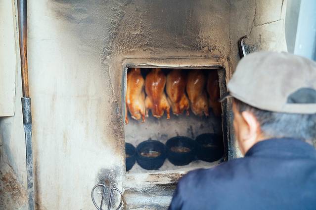 两个烤炉各司其职,一楼的负责烤冒烤鸭的,焖炉烤制;二楼负责考片烤鸭的,明火加热;方法不同,制作出来的烤鸭口感、滋味也有所不同。店家对食材烹饪方法的要求达到了极致,做出来的美食自然是无可挑剔的。