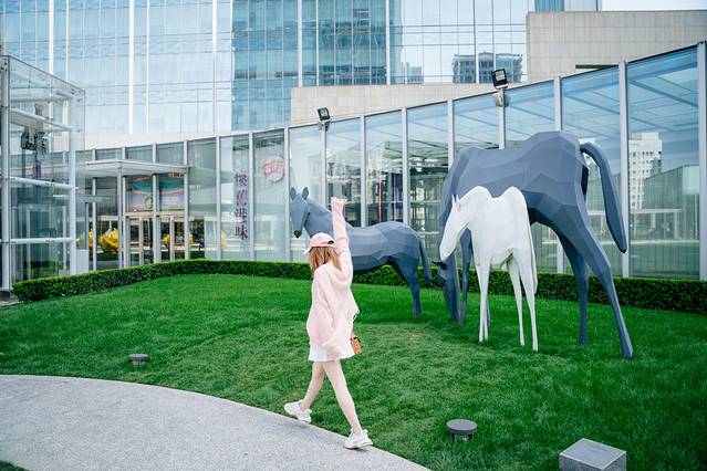 这里的建筑将传统与现代巧妙融合,青瓦人字顶的中式古典设计配上现代的落地玻璃幕墙。