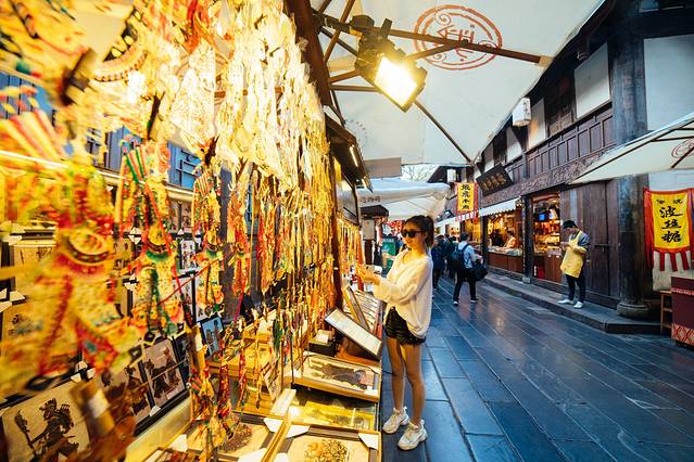 比起在白天来这条西蜀第一街,我更加建议夜晚到锦里欣赏别致的夜景,漫步在锦里,沿街可以看到很多传统民间艺人的身影,以及在别处看不到的成都传统艺术。