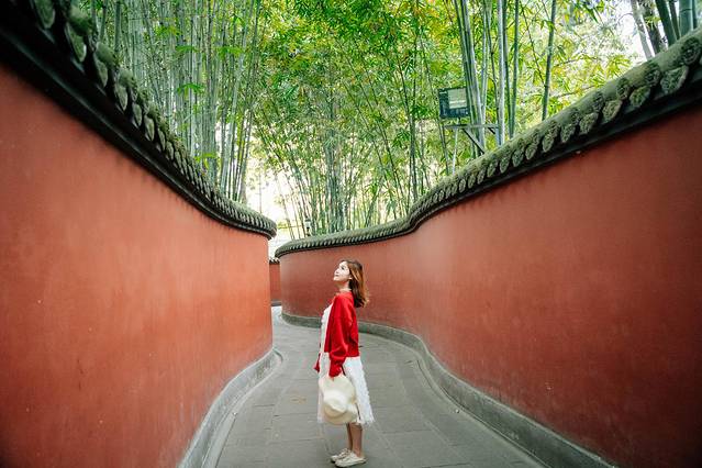 这里面有一处静谧又凉快的拍照好去处--刘备惠陵,青瓦红墙两侧种着茂密的竹林,平时这里的人也不多,所以可以随意凹造型,红墙绿树相称,度过了多少风风雨雨,将岁月留下的痕迹记录在相机里,为了就是定格那一瞬的光影交错。