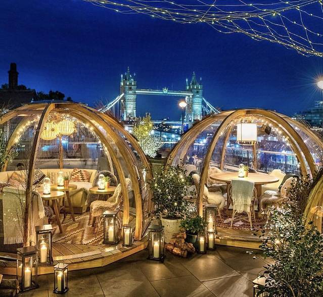 夏天的时候,装饰上绿色的植物是小清新的画风,而到了圣诞节配上毛茸茸的毯子和沙发,暖暖的灯光透出来又有点像爱斯基摩人的Igloo小屋,每个小屋里配备给力的供暖和听歌的音响,再加上美到不行的泰晤士河夜景,圣诞气氛满分!