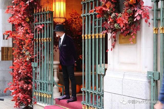 Park Chinois中园中餐厅是一家极具特色的提供精致午餐和晚餐的中式餐厅,餐厅的主题是为了致敬1930年代的上海的浮浮沉沉。装饰着桃花、红门、乌龟石雕、红灯笼,法式丝绒沙发,豪华宫灯,各色古董摆设、桌椅都是红木包着碎花布。