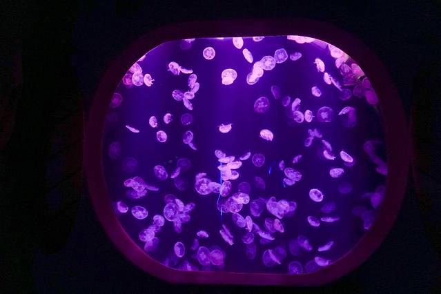 你有看到吗?在五颜六色灯光的照亮下,是那散发着曼妙身姿的水母。成群挥舞,十分浪漫梦幻。