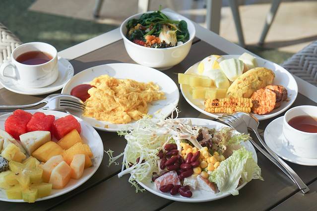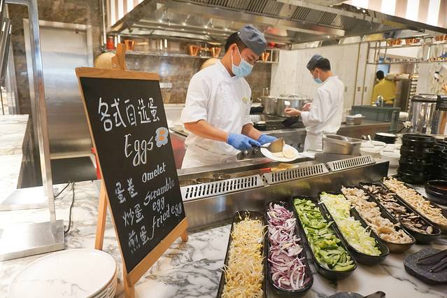 早餐是在番红花自助餐厅吃的。里面各式各样的早餐。西式餐点、中式茶点、日式料理、热烫类主食物、水果蔬菜、糕点饮料这里都有。