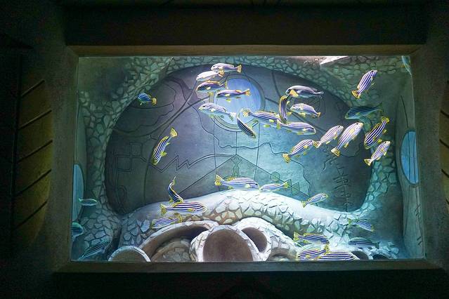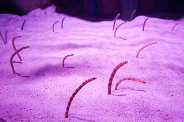走进水族馆里面,幽暗的灯光把你带入失落的乌托邦文明。这里有多达280多种的海底生物,水族馆的水与海棠湾水域相连,水量高达17500吨。透过一个个mini的小水缸我能看到各种形态的小鱼。重点是我看到了我觉得最可爱的小丑鱼,它们都悠闲地飘游在水里。