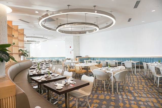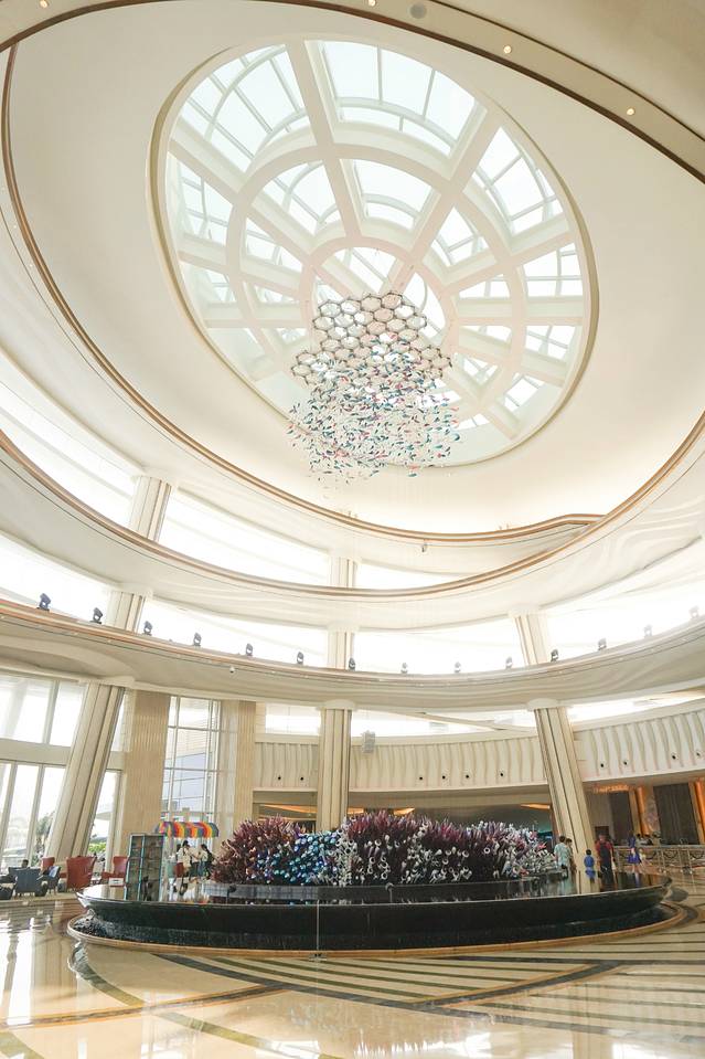 以海洋为灵感的独有设计风格,大堂顶部设计以海浪和漩涡为灵感,运用各式材质创造出潮汐的奇特景象,让我们都能领悟到海洋之美。