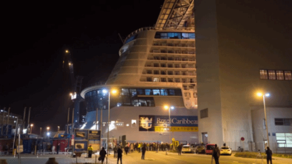 2019年2月26日:历经18个月时间铸造的海洋光谱号浮出船坞,意味着这艘万吨巨轮正式诞生