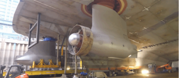 2019年2月20日:两个吊舱式推进系统和螺旋桨安装到位,以41兆瓦马力,134rpm的转速,实现每小时23.7节的航速。