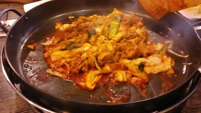 晚上吃的是很火的春川辣炒鸡排,超级好吃真的不得不试!!