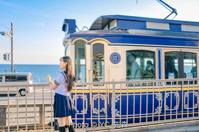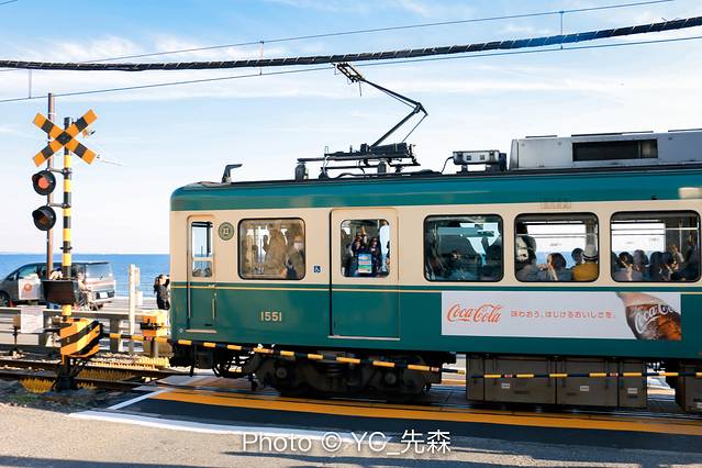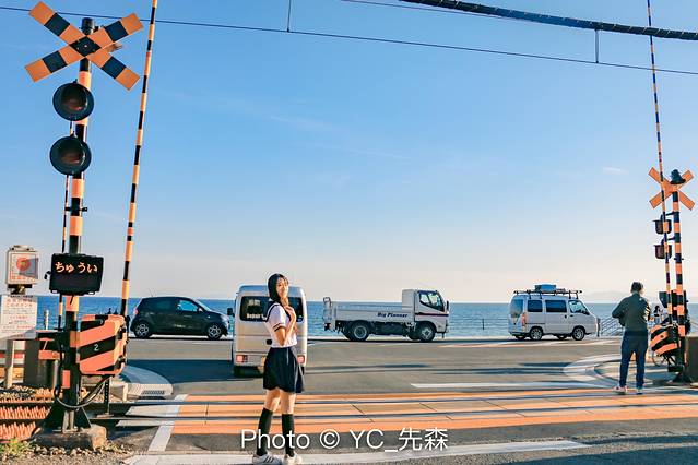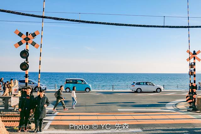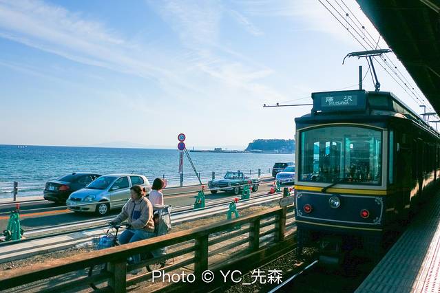 从长谷寺出发,十几分钟的车程就到达镰仓高校前,在海岸的衬托下,景色也越来越美。