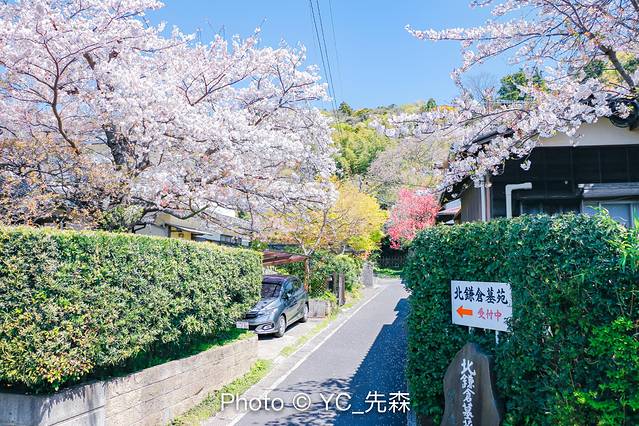 出站后,北镰仓就给了我们一个小惊喜,在樱花开败的时节,第一次近距离看到这么美的樱花,搭配着日式的建筑,很美。