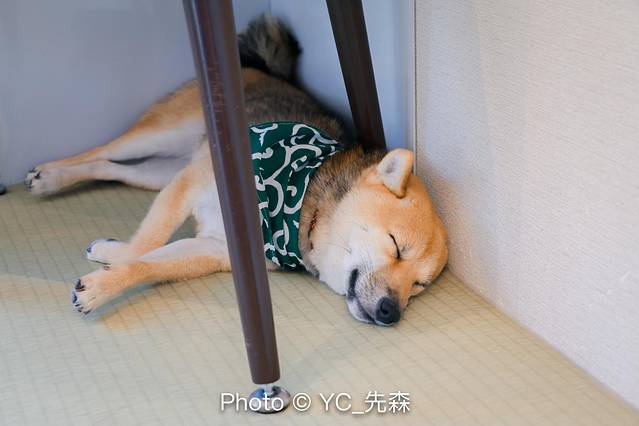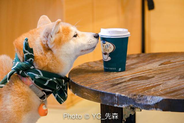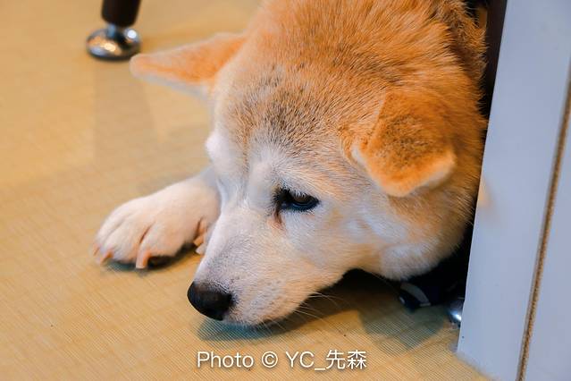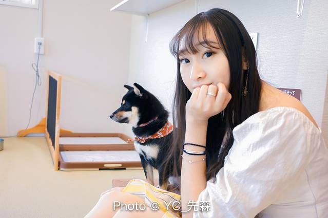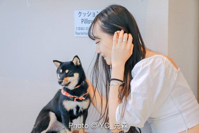 caelyn小同学进门后就开始寻摸可能会配合她拍照的小柴,经过多番尝试终于找到了这只柴,安静乖巧的坐在角落里。于是赶紧开启了人像模式