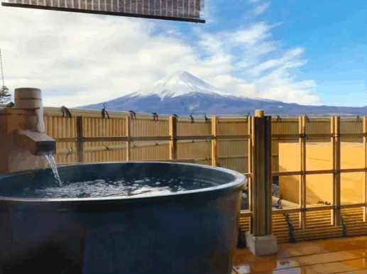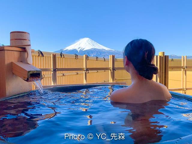 泡着温泉眺望富士山,caelyn的心愿get了~