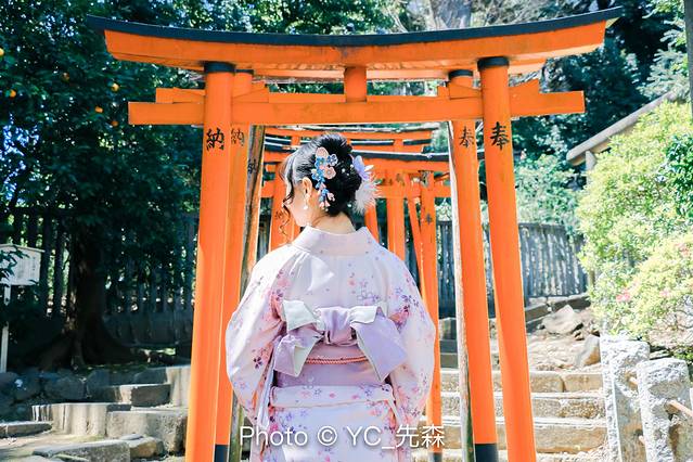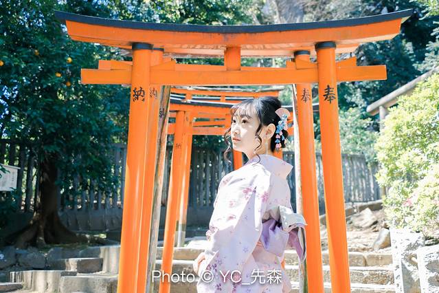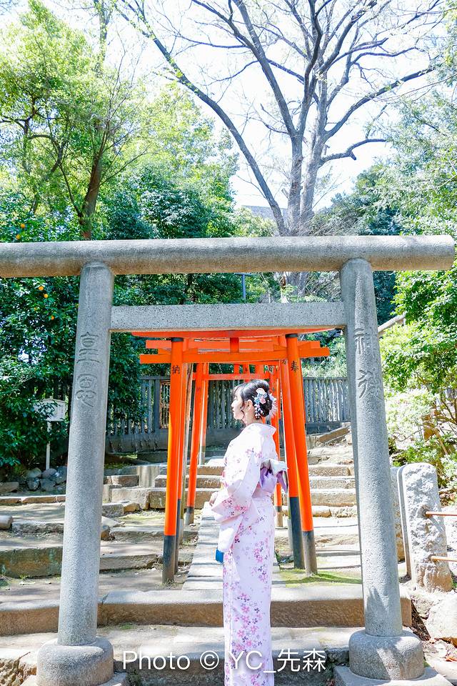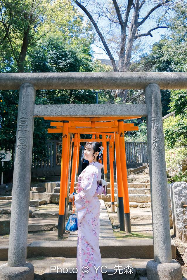 浅色系的和服在根津神社拍照很适合,清新之中还有一些优雅