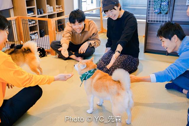 进门之前会有店员来介绍一下入场的一些基本情况,要求大家消毒洗手,告知大家进门后和小柴互动不要抱起来,不要追着跑等等,也不用担心听不懂有中文的注释图片。接下来就可以跟萌宠们亲密互动了~