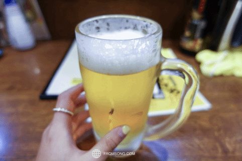 随意进了一家小酒馆,点了下酒菜和一杯啤酒作为自己的晚饭。