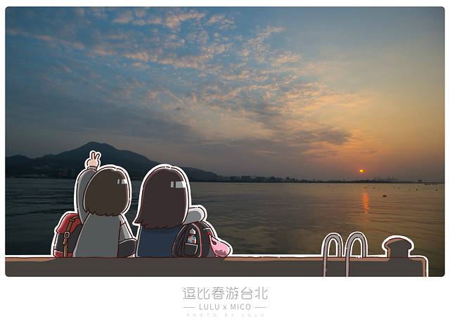 在半山腰上看到淡水河上的太阳准备下山啦!看到美美的晚霞,想到如果这个时候能去到防波堤上绝对是最美好的事情!于是和Mico两个忙冲下山!Go!