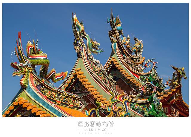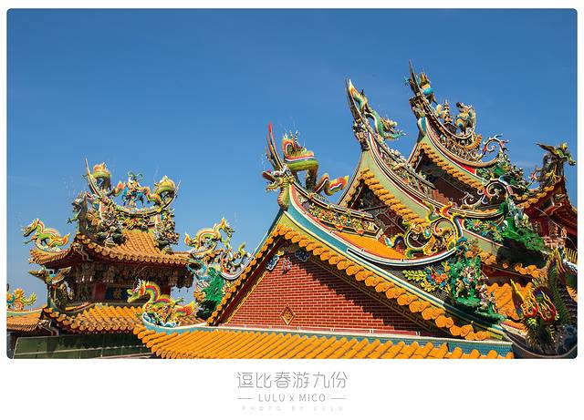 去猴硐,就必须要先在九份搭bus出发去 瑞芳 火车站坐火车才能去到,在九份里走,看到超级漂亮的庙屋顶,这精细程度真的好华丽!