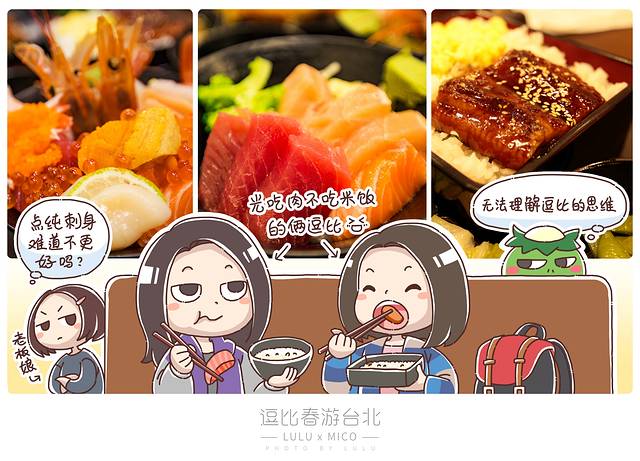 在mico朋友的极力推荐下~我们来到一家日料店~因为传说中, 台湾的日料都做的很棒~怎么可以错过呢~但是我们两个真的是无比逗比,点餐的时候除了点了炸豆腐,章鱼,虾卷和杏鲍菇外,还点了三碗定食...估计老板娘看到我们点的餐单后,对我们也是无语了~